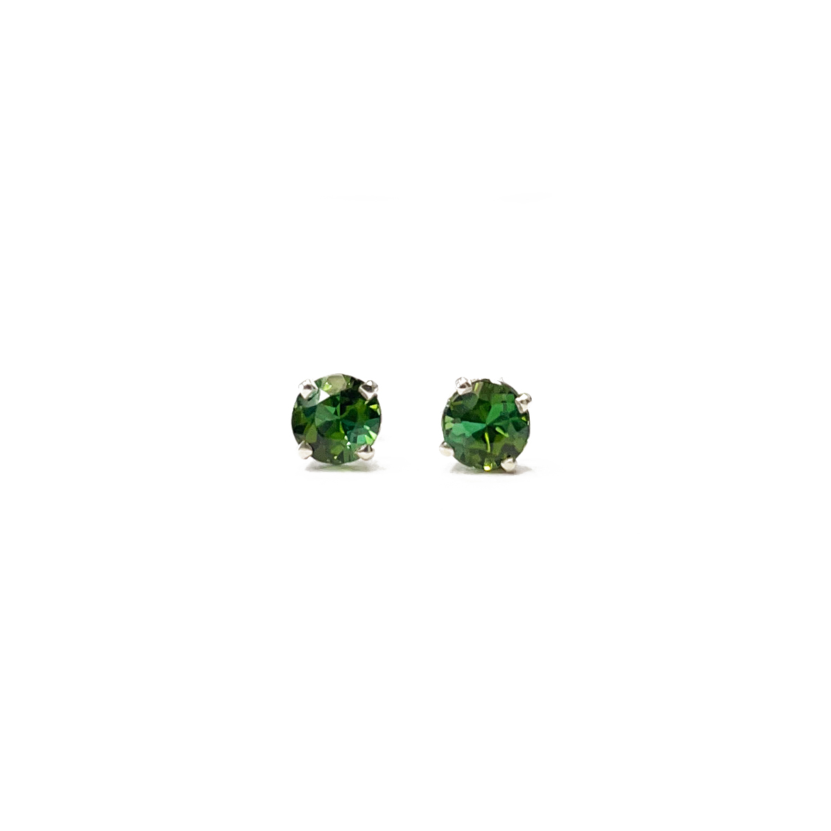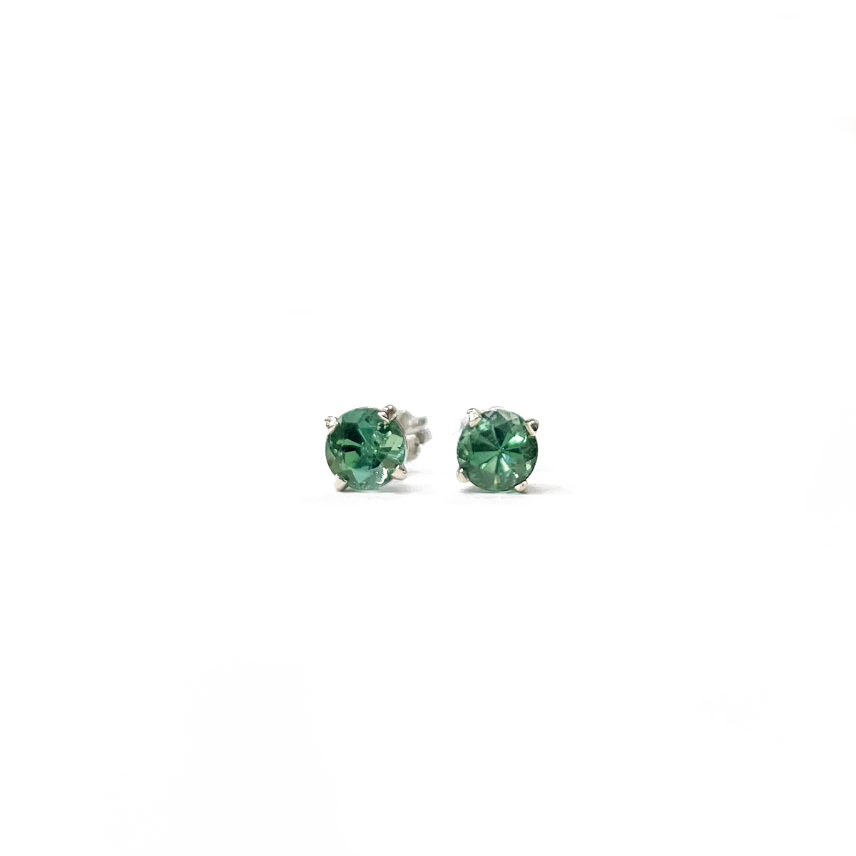 Round Green Tourmaline Stud Earrings in 14K White Gold
