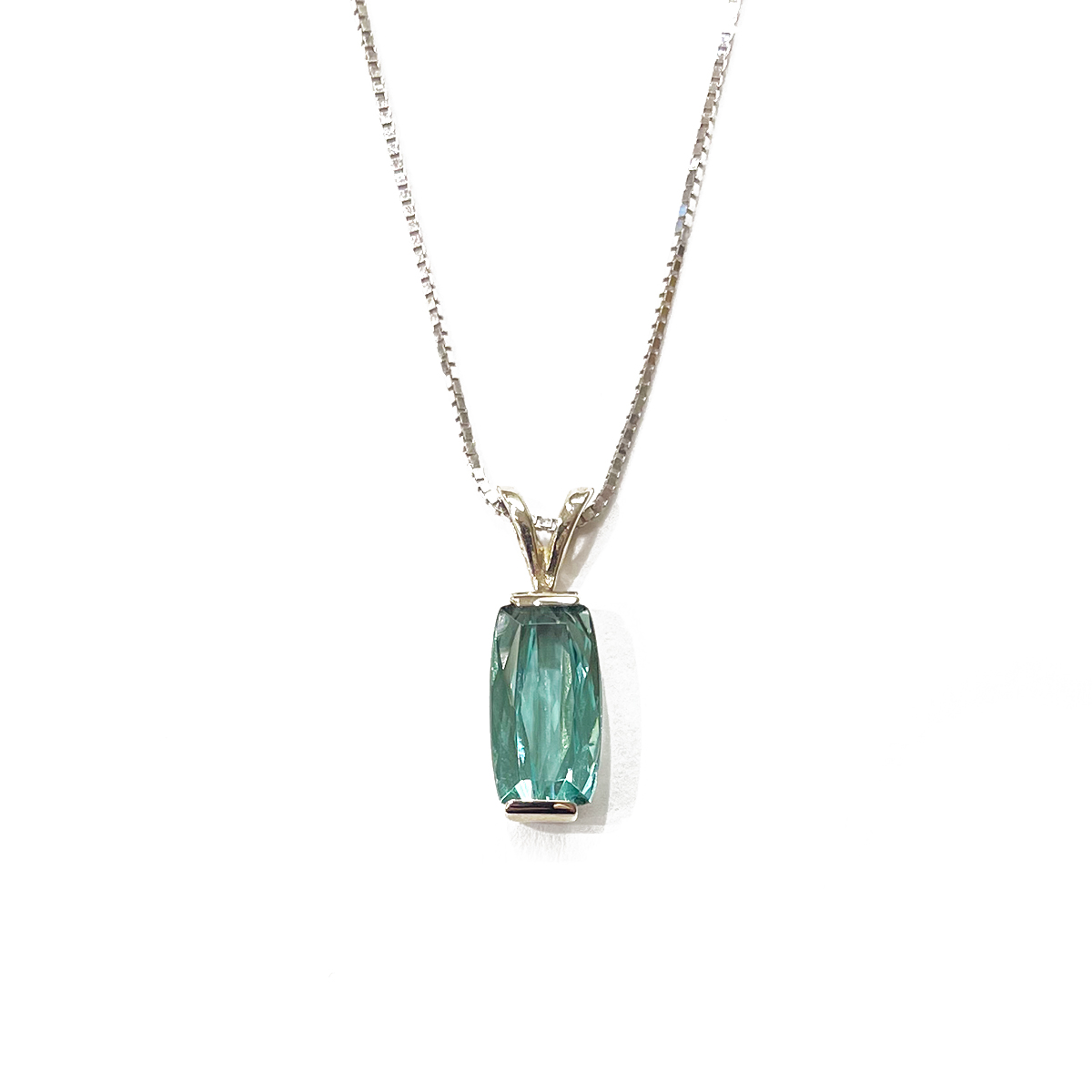 Cushion Cut Indicolite Tourmaline Pendant Bar Set in 14K White Gold