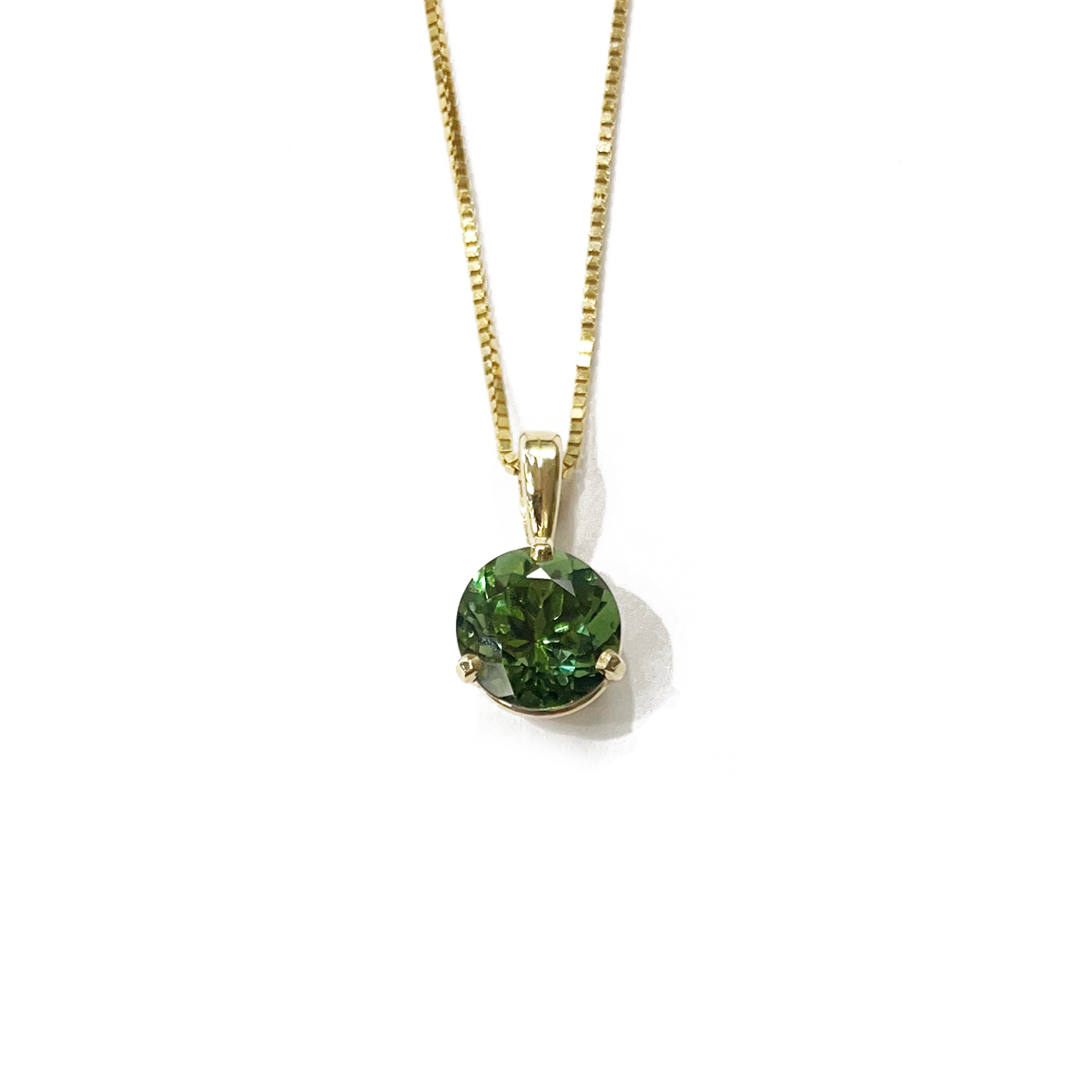 Round Cut Maine Green Tourmaline Pendant in 14K Yellow Gold