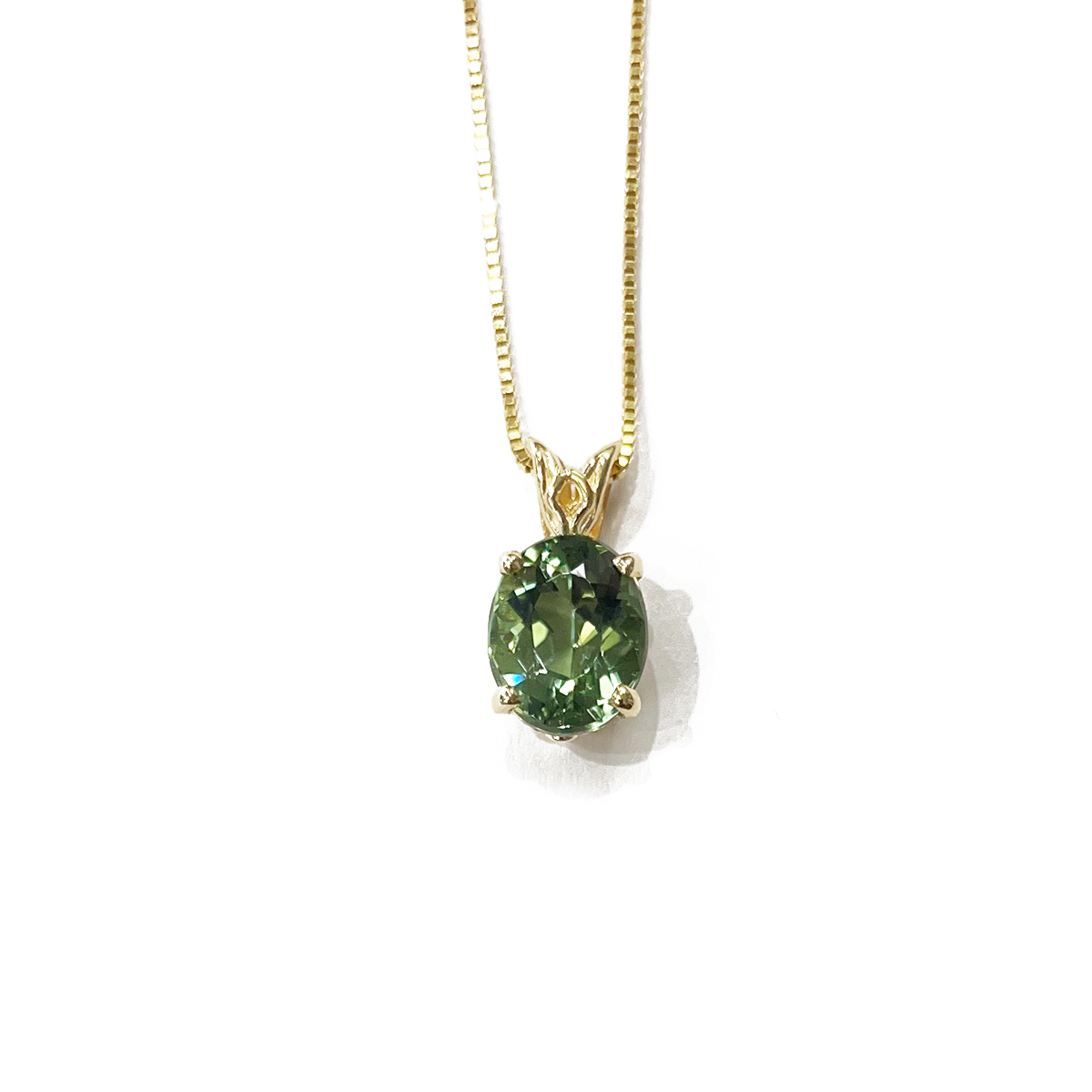 Oval Cut Green Tourmaline Pendant in 14K Yellow Gold