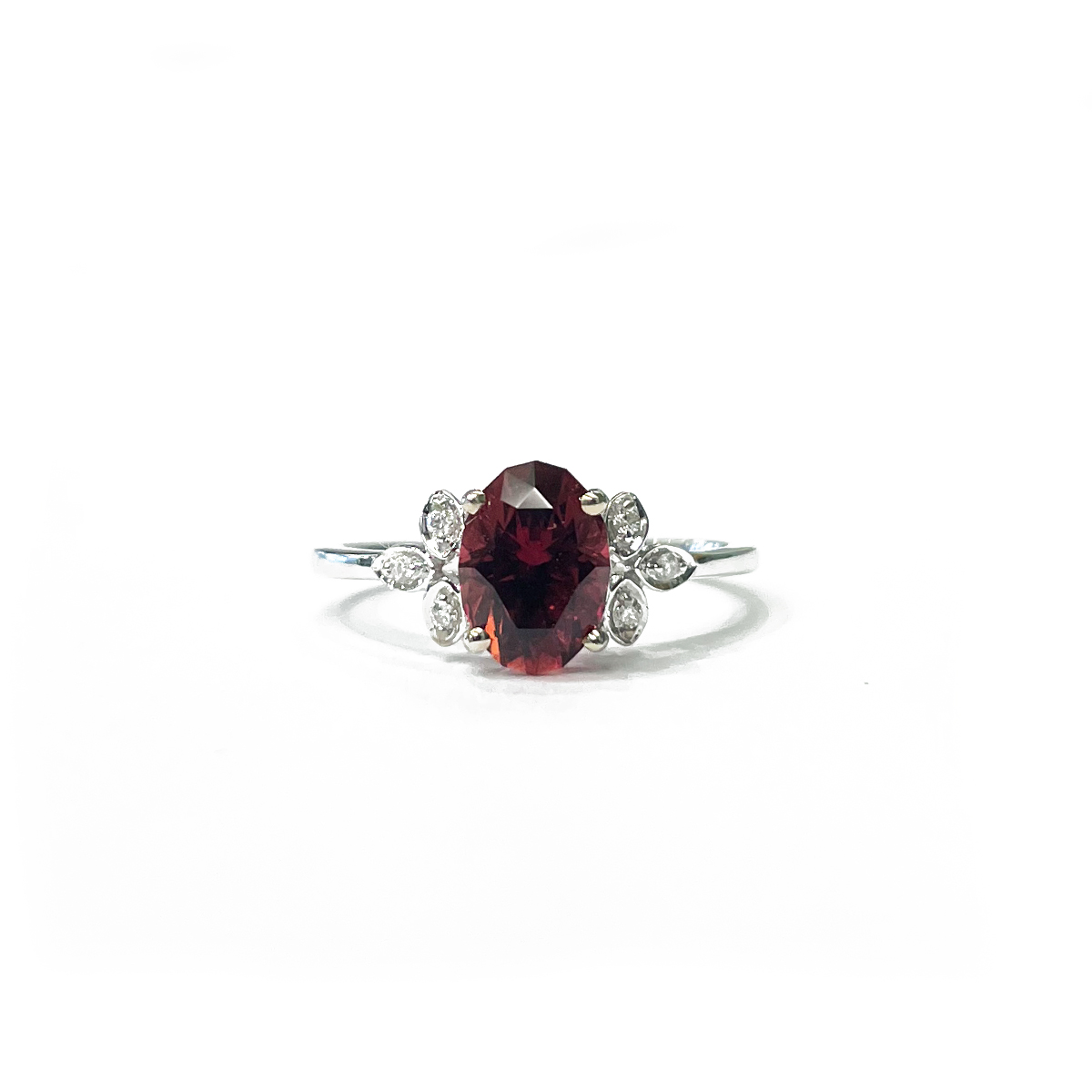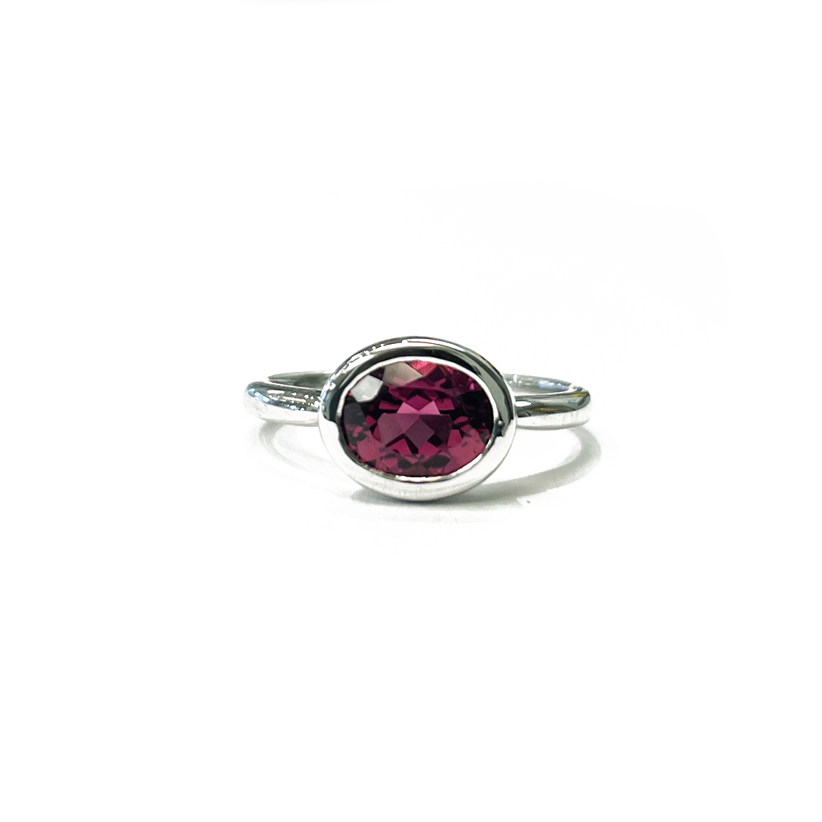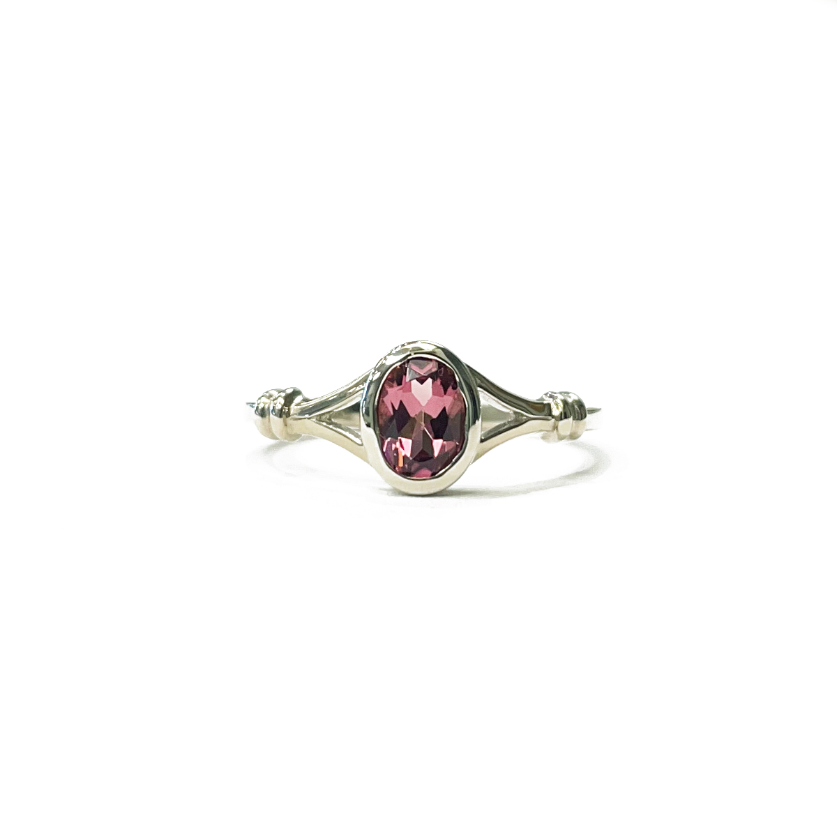 Oval Cut Maine Pink Tourmaline Ring Bezel Set in 14K White Gold