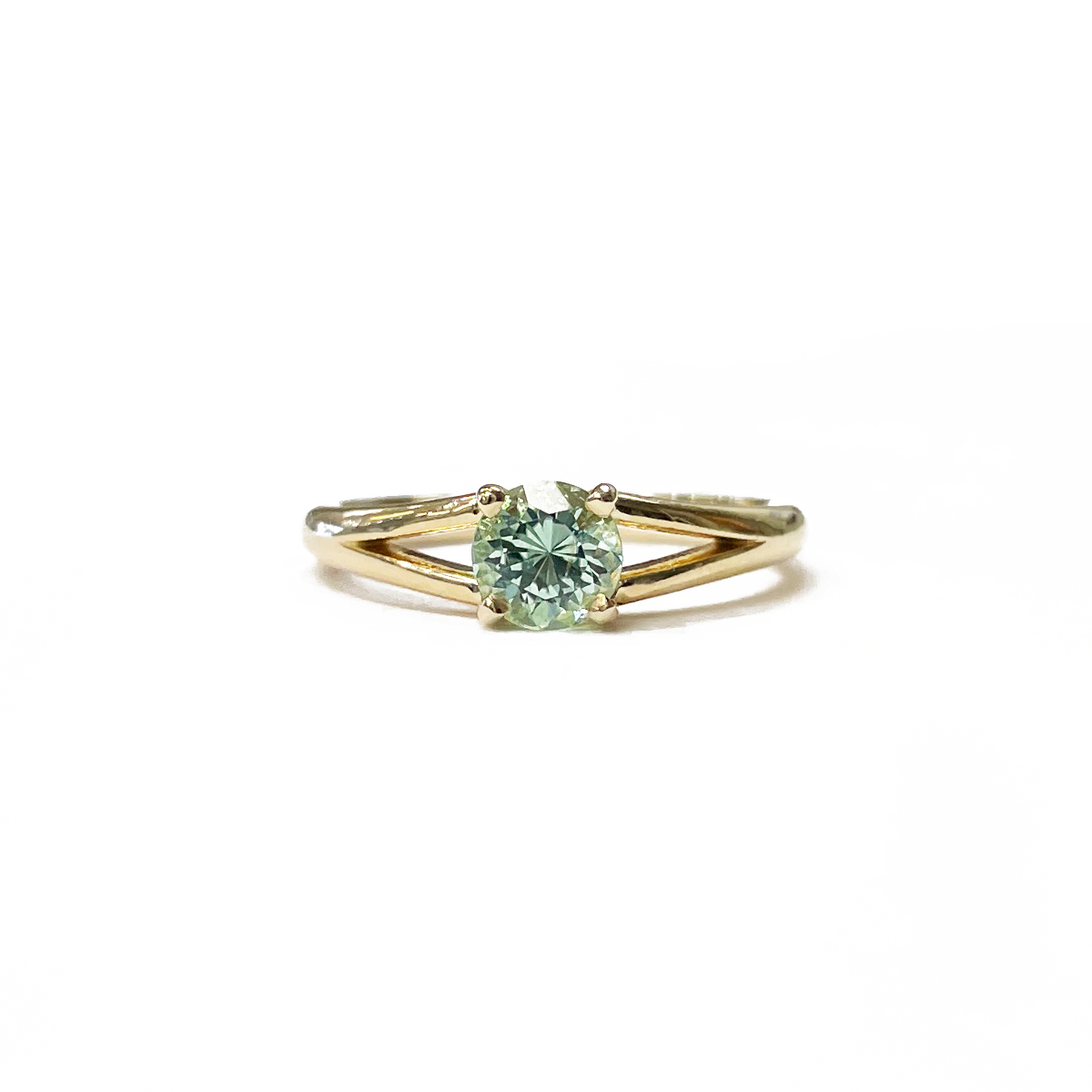 Round Cut Mint Green Maine Tourmaline Ring in 14K Yellow Gold Split-Shank