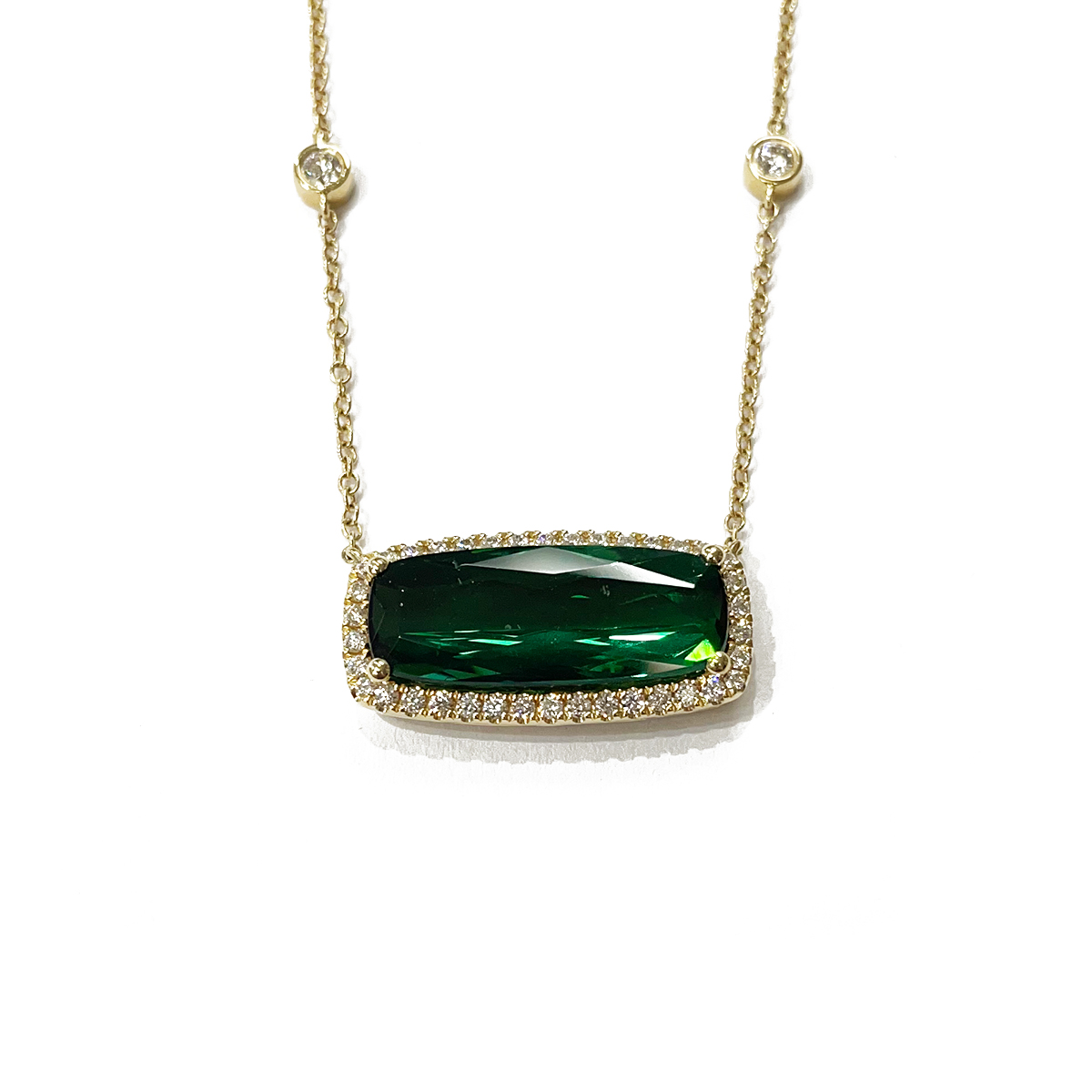 Cushion Cut Green Tourmaline Pendant with 0.64cttw Diamond Accents in 14K Yellow Gold