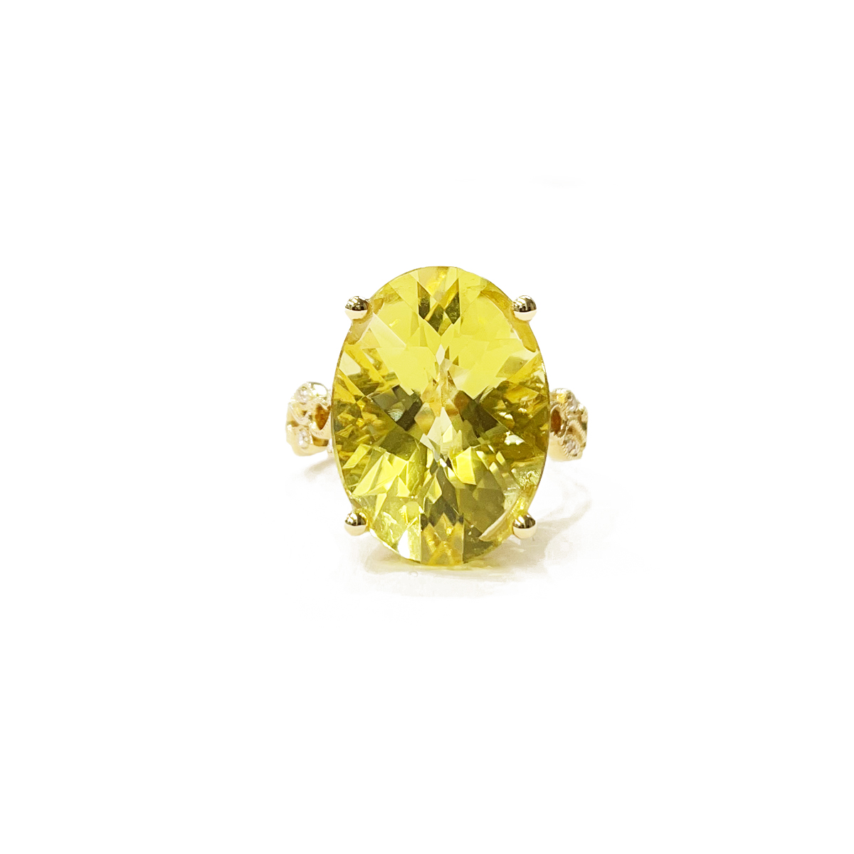 Oval Cut Citrine Ring with Diamond Shank Accents in 14K Yellow Gold