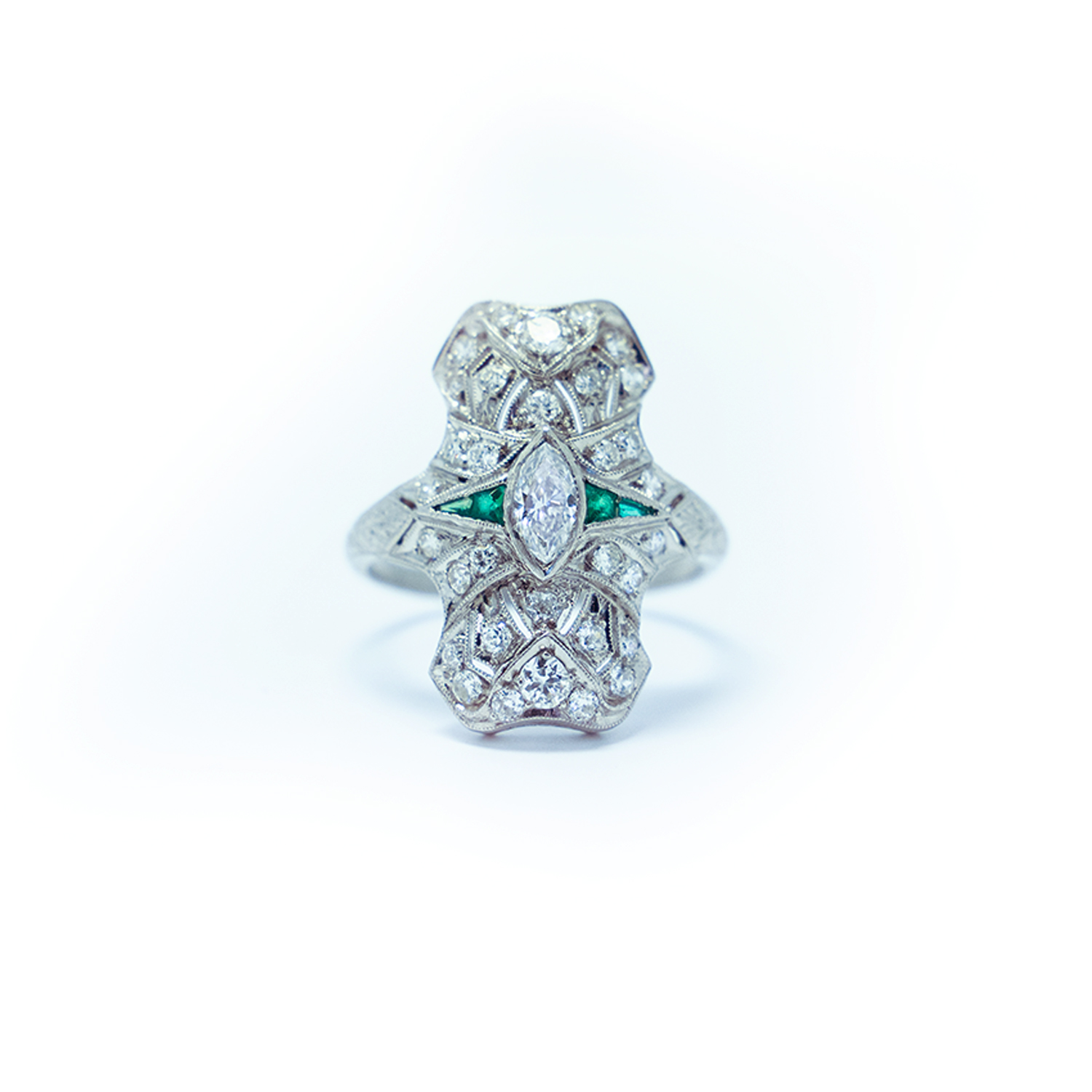 Estate Diamond Band with Emerald Cut Diamonds in 14K White Gold