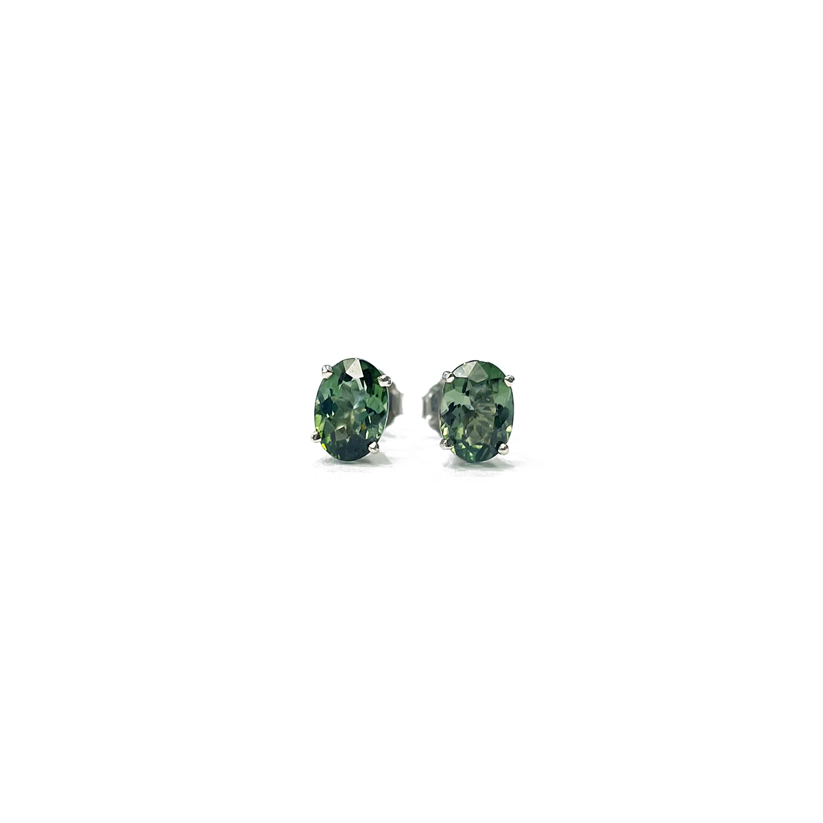 1.64cttw Oval Green Tourmaline Prong set in 14K White Gold Stud.