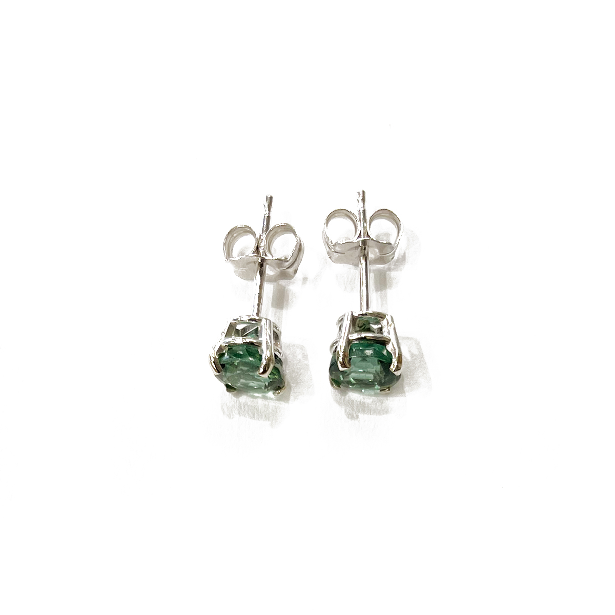 Vibrant 1.16cttw Round Cut Green Tourmaline Stud Earrings Prong Set in 14K White Gold.