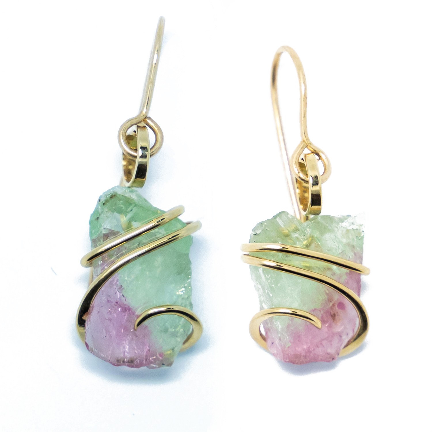 14K yellow gold dangle earrings prong-set with 4.95cttw Pink Oval Tourmaline. Includes 14K yellow gold leverbacks.