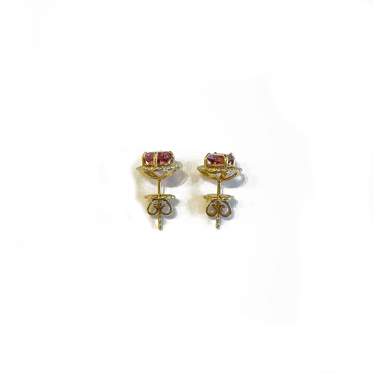 1.69cttw Round Cut Pink Maine Tourmaline Studs with 0.30cttw Diamond Accent Prong Set in 14K Yellow Gold.