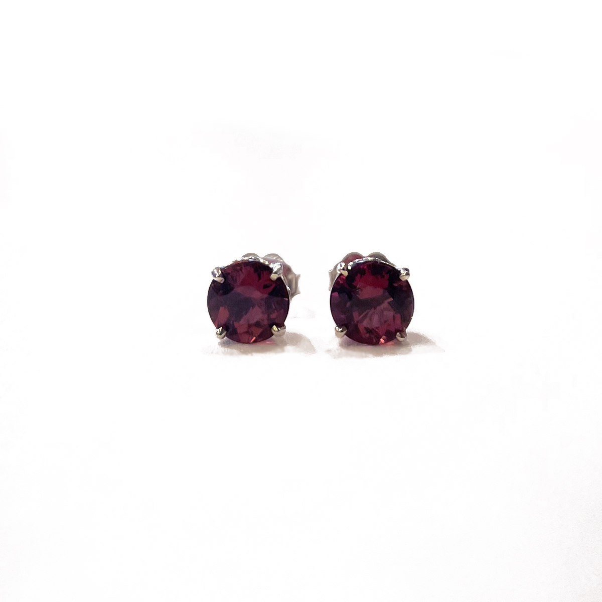 1.72cttw of Deep Pink Round Tourmaline studs prong set in 14K yellow gold mountings.