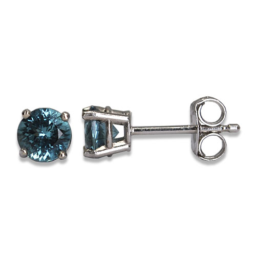 0.52cttw Round Brilliant Cut Maine Blue Tourmaline Prong set in 14K White Gold Stud.