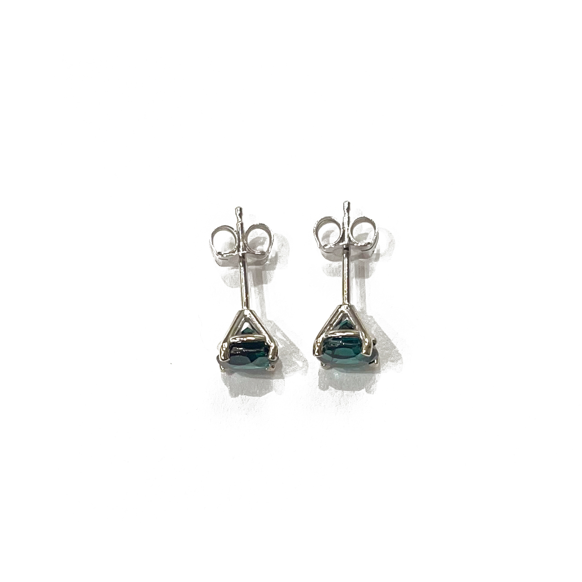 Stunning 1.29cttw Round Cut Deep Indicolite Tourmaline Stud Earrings Prong Set in 14K White Gold Martini Settings.