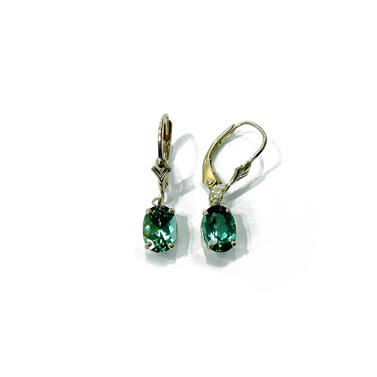 2.56cttw Oval Cut Indicolite Tourmaline Dangle Earrings Prong Set in 14K Yellow Gold Lever Backs.