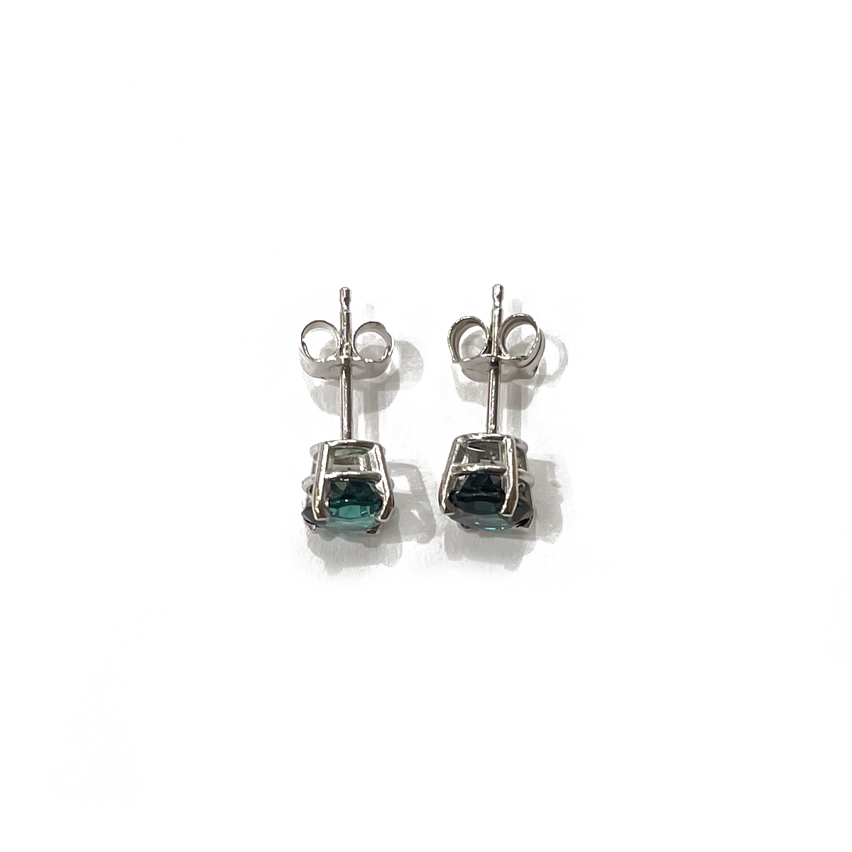 Beautiful 1.09cttw Round Cut Indicolite Tourmaline Stud Earrings Prong Set in 14K White Gold Settings.