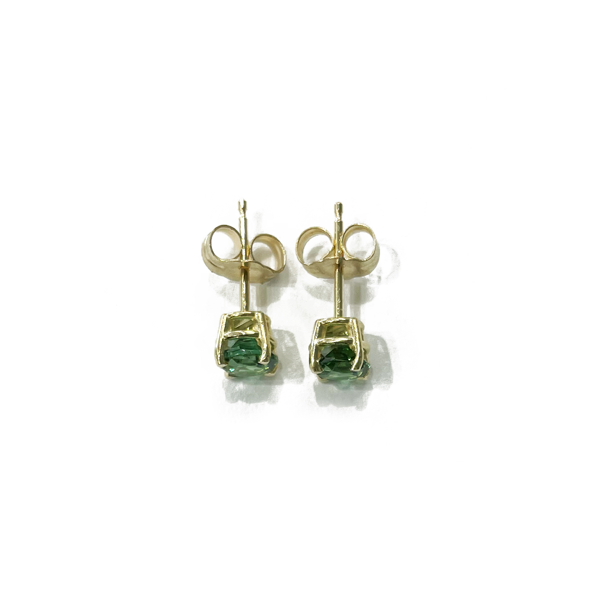 Simplistic 0.84cttw Round Cut Green Tourmaline Stud Earrings Prong Set in 14K Yellow Gold Settings.