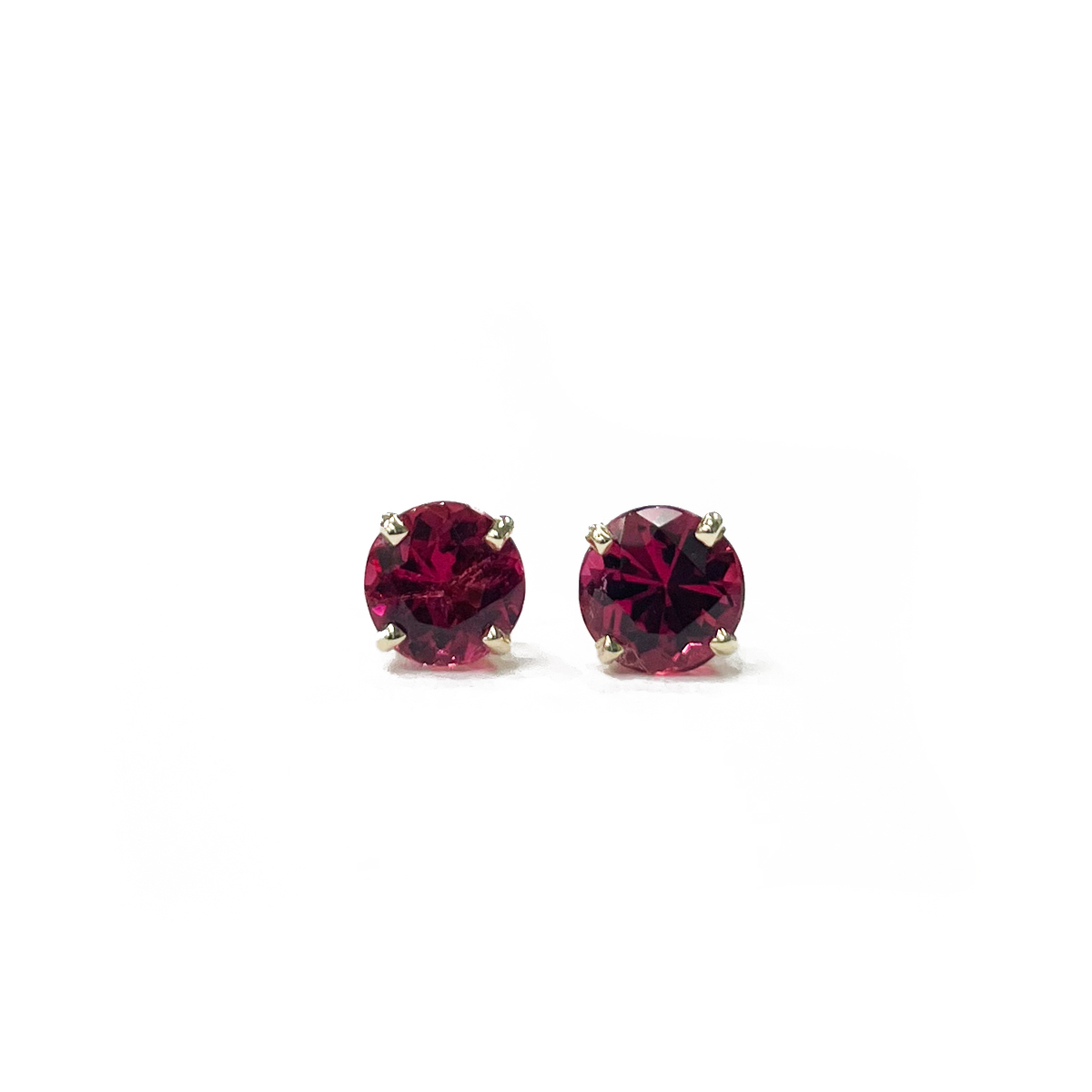 Stunning 1.88cttw Round Cut Deep Pink Tourmaline Studs Prong Set in 14K Yellow Gold Settings