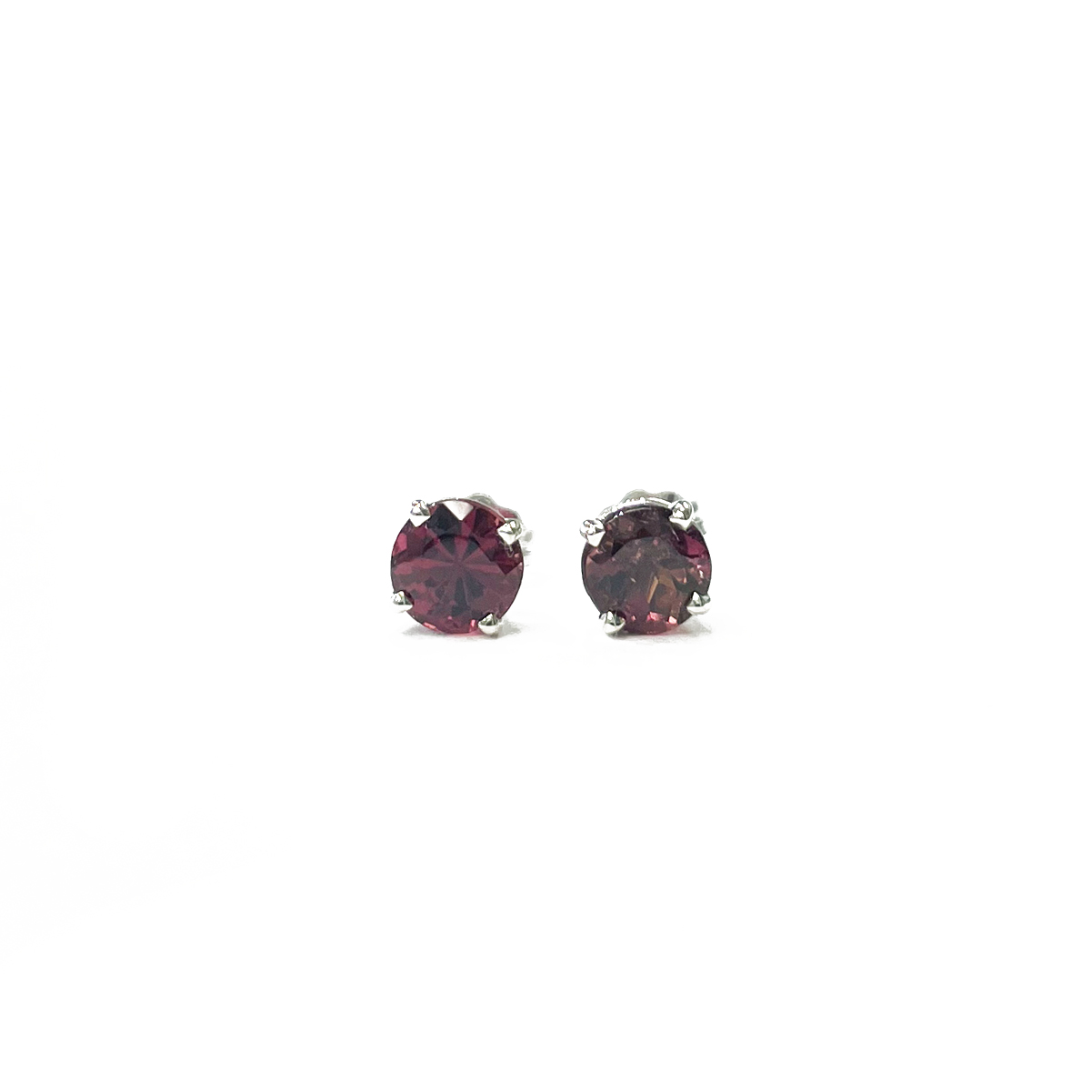 Classic 1.53cttw Round Cut Maine Pink Tourmaline Stud Earrings Prong Set in 14K White Gold Settings.
