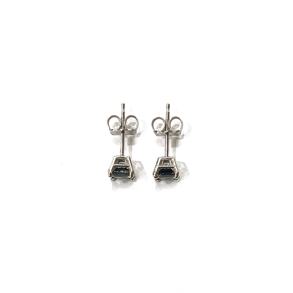 Beautiful 0.61cttw Square Cut Maine Indicolite Tourmaline Stud Earrings Prong Set in 14K White Gold Settings.