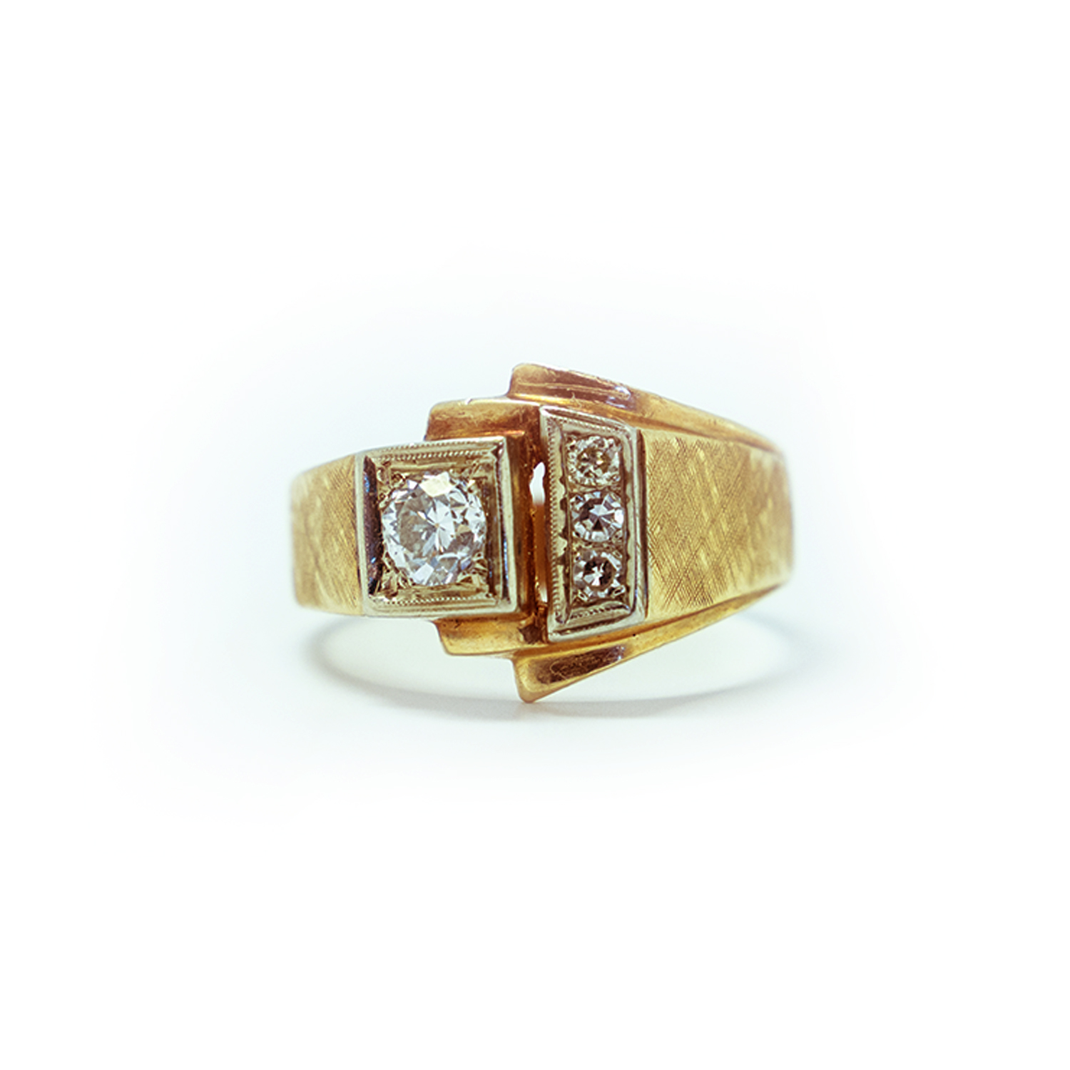 1940’s Buckle Ring with 0.50cttw Round Diamonds Prong Set in 14K Yellow Gold.