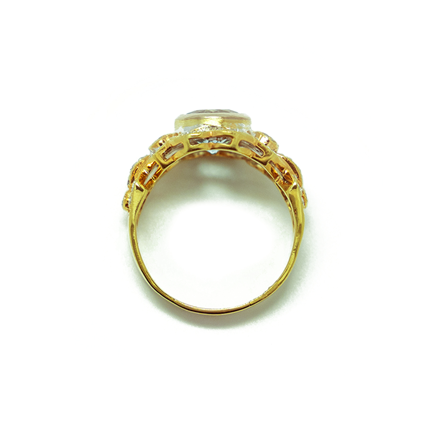 1.53ct Round Aquamarine Bezel Set Estate Ring with 0.66cttw Diamond Accents in 18K Yellow Gold Setting.