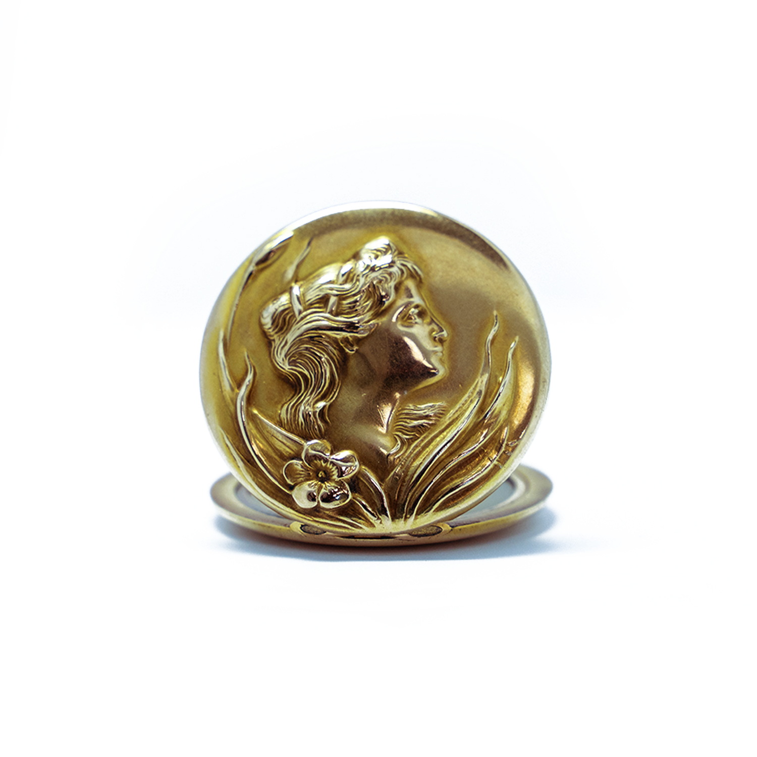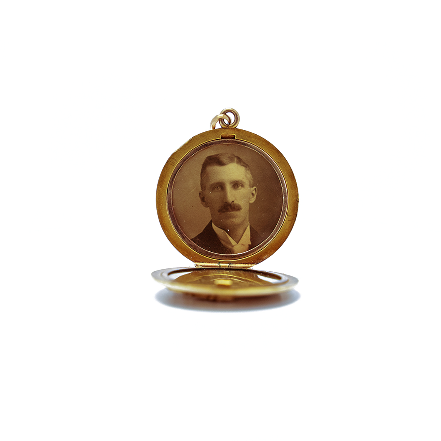 Art Nouveau Gold Locket in 10K and 14K Yellow Gold with pictures and backside engraving.