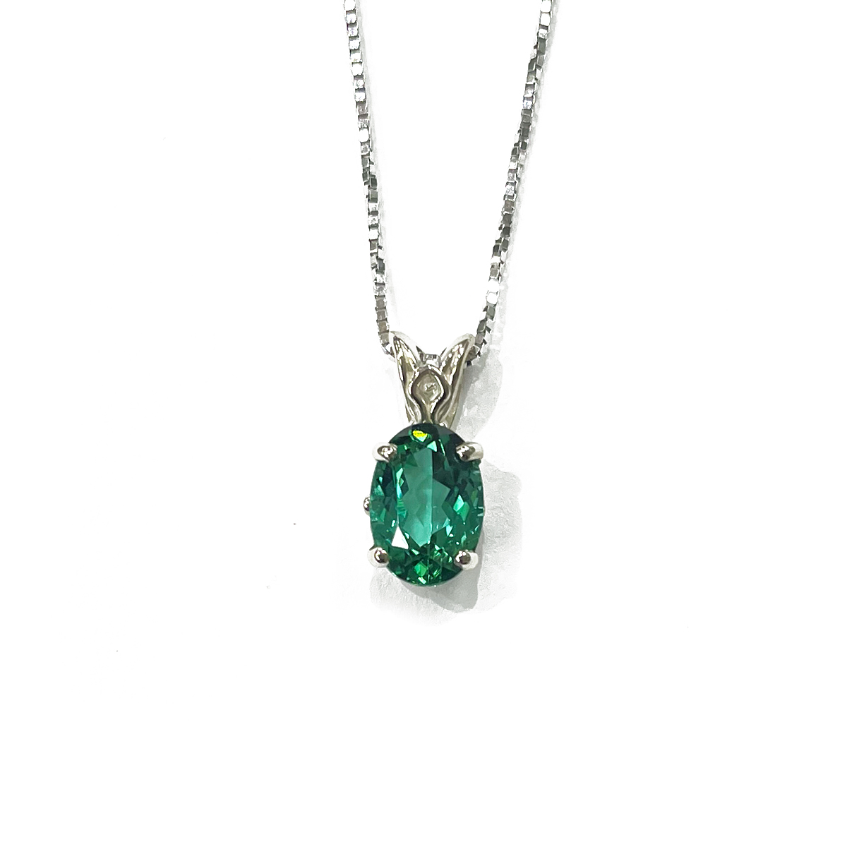 Eye-Catching 1.73ct Oval Cut Indicolite Tourmaline Pendant Prong Set in 14K White Gold on an 18″, 14K White Gold Box Chain.