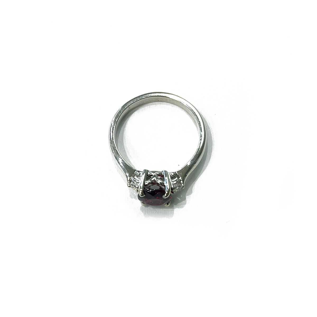 1.20ct Round Cut Stunning Maine Rubellite Tourmaline Ring Accented with 0.09cttw Diamonds Prong Set in a 14K White Gold Setting