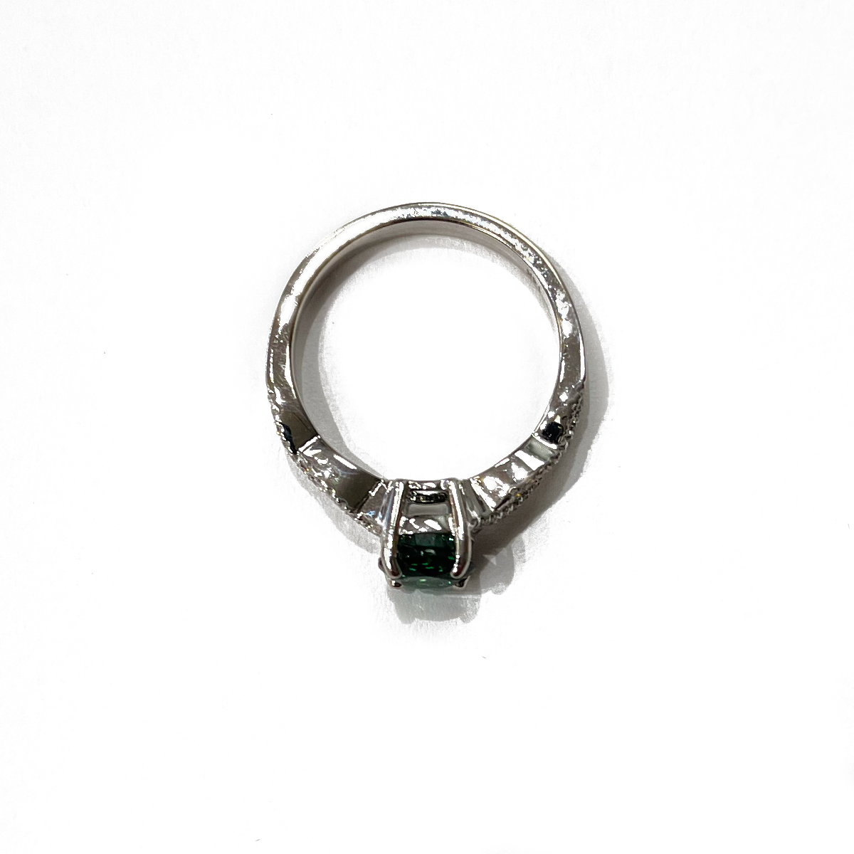 Stunning 0.92ct Round Cut Maine Deep Green Tourmaline Ring with 0.16cttw Diamond Accents Prong Set in 14K White Gold Twist Setting.