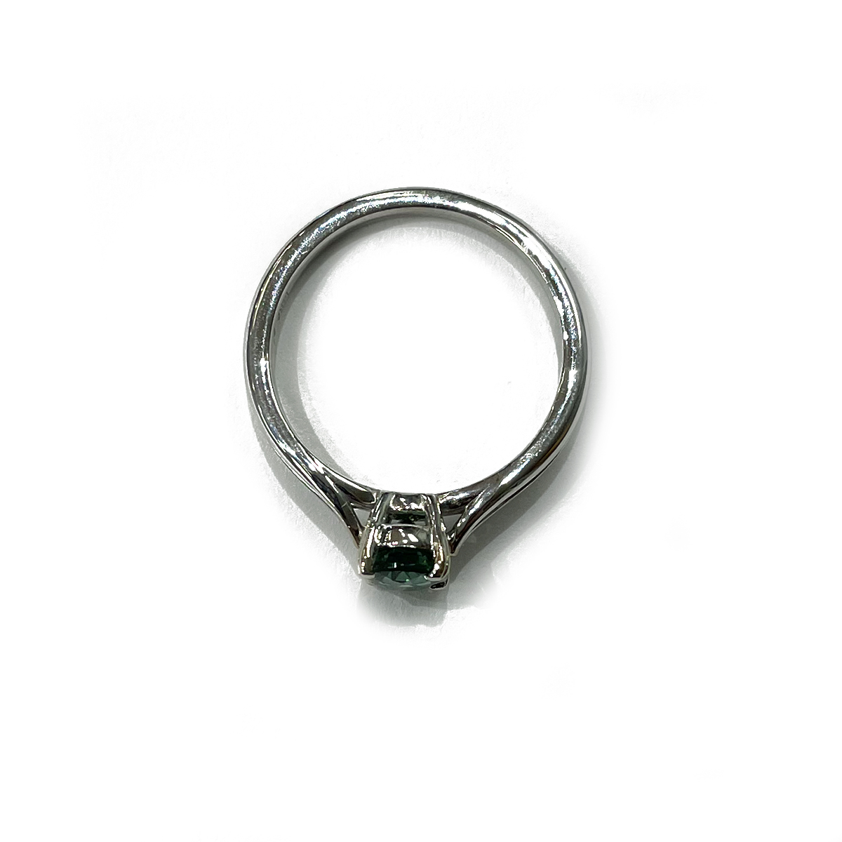 Beautiful 0.93ct Oval Cut Indicolite Tourmaline Ring Prong Set in a Simplistic 14K White Gold Split Shank Setting.