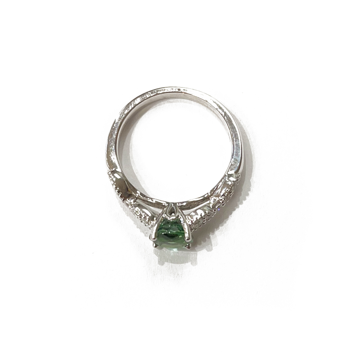 Gorgeous 1.11ct Round Cut Maine Green Tourmaline Ring with 0.31cttw Diamond Accents Prong Set in Unique 18K White Gold Setting.