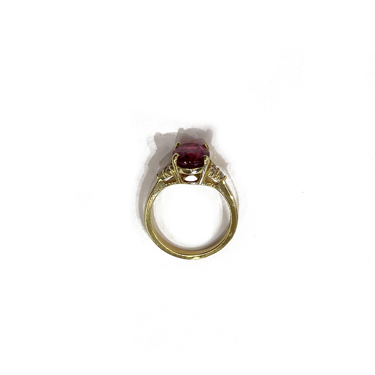 The three small boats known as the Three Dories are a classic symbol of Kennebunkport. As they float on the Kennebunk River the tide moves them slowly and effortlessly. This eye catcher also brings to mind the spectacular Prelude Fireworks that are seen over the Three Dories in December. This Three Dories Ring features a stunning 3.22ct Oval Cut Hot Pink Tourmaline in an 18K Yellow Gold Ring mounting with 0.26cttw White Diamonds prong set on either side of the Tourmaline.