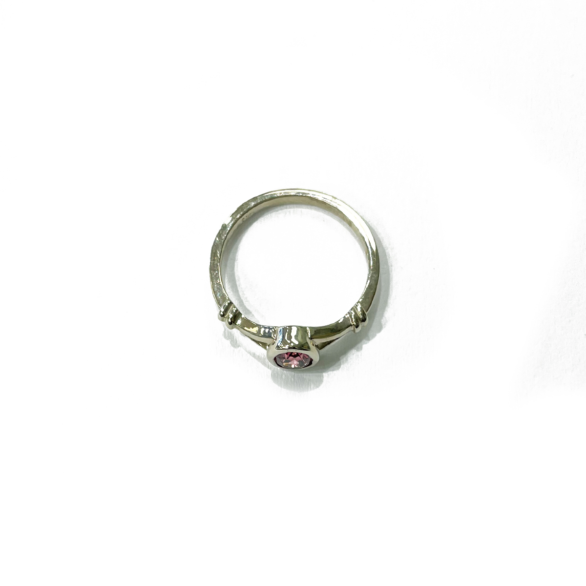 0.48ct Oval Cut Maine Pink Tourmaline Ring Bezel Set in a Nautical Style 14K White Gold Setting