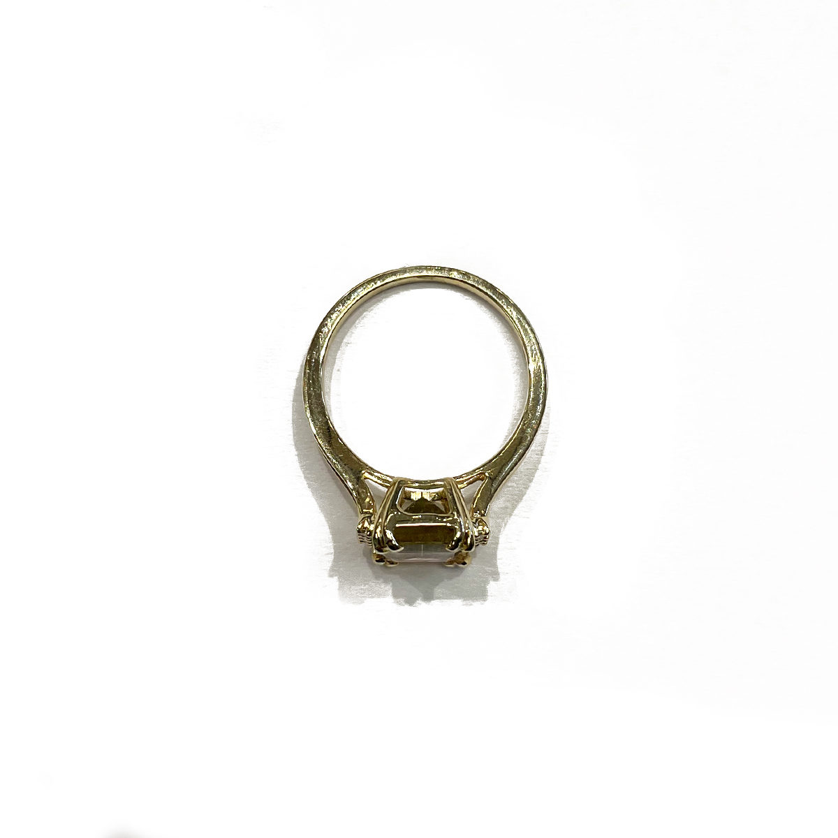 2.34ct Emerald Cut Watermelon Tourmaline Ring with 0.11cttw Diamond Accent Set in 14K Yellow gold Split-Shank setting.