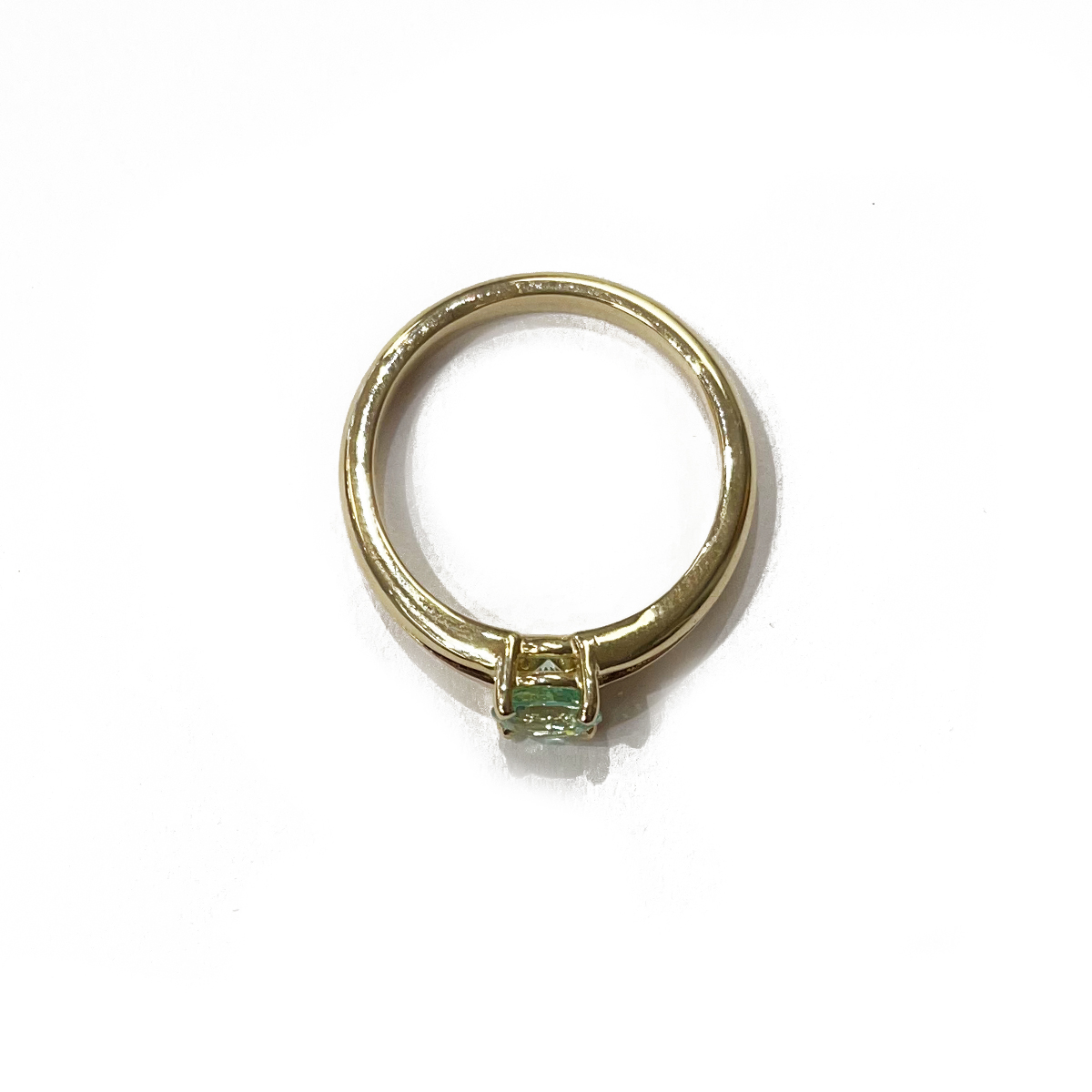 Timeless 0.63ct Round Cut Bright Mint Green Maine Tourmaline Ring Prong Set in Simplistic 14K Yellow Gold Split-Shank Setting.