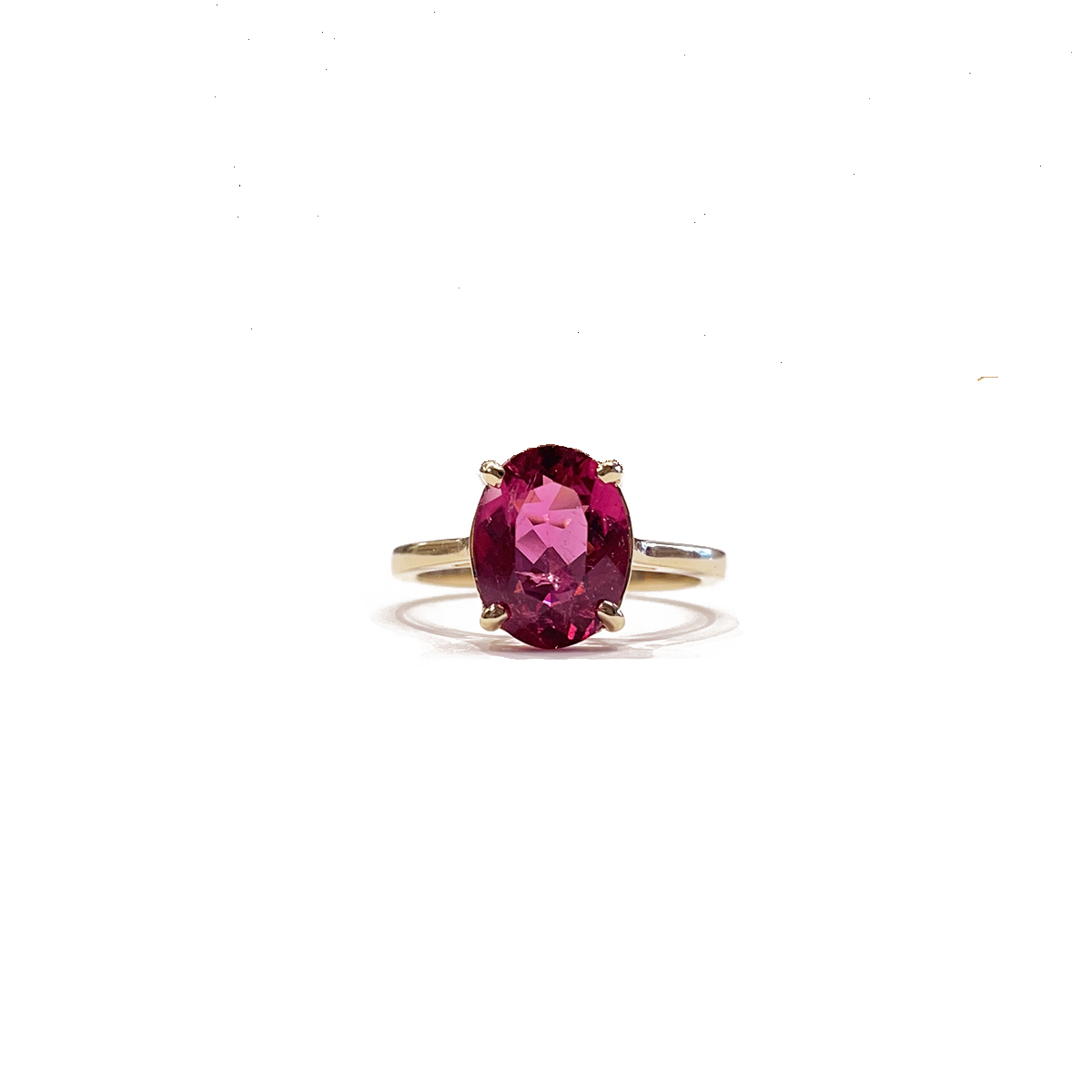 2.28ct Oval Pink Tourmaline Ring Prong Set in 14K Yellow Gold.