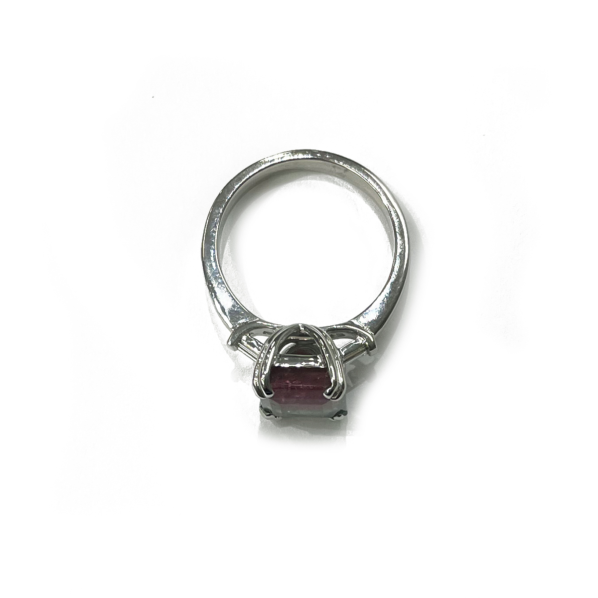 Stunning Tourmaline Ring Featuring a 3.50ct Emerald Cut Bi-Color Watermelon Tourmaline Double Prong Set with 0.13cttw Diamond Accents in a 14K White Gold Setting