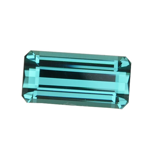 1.77ct Elongated Emerald Cut Electric Blue Tourmaline. The tourmaline is eye clean with a vibrant teal blue saturation.