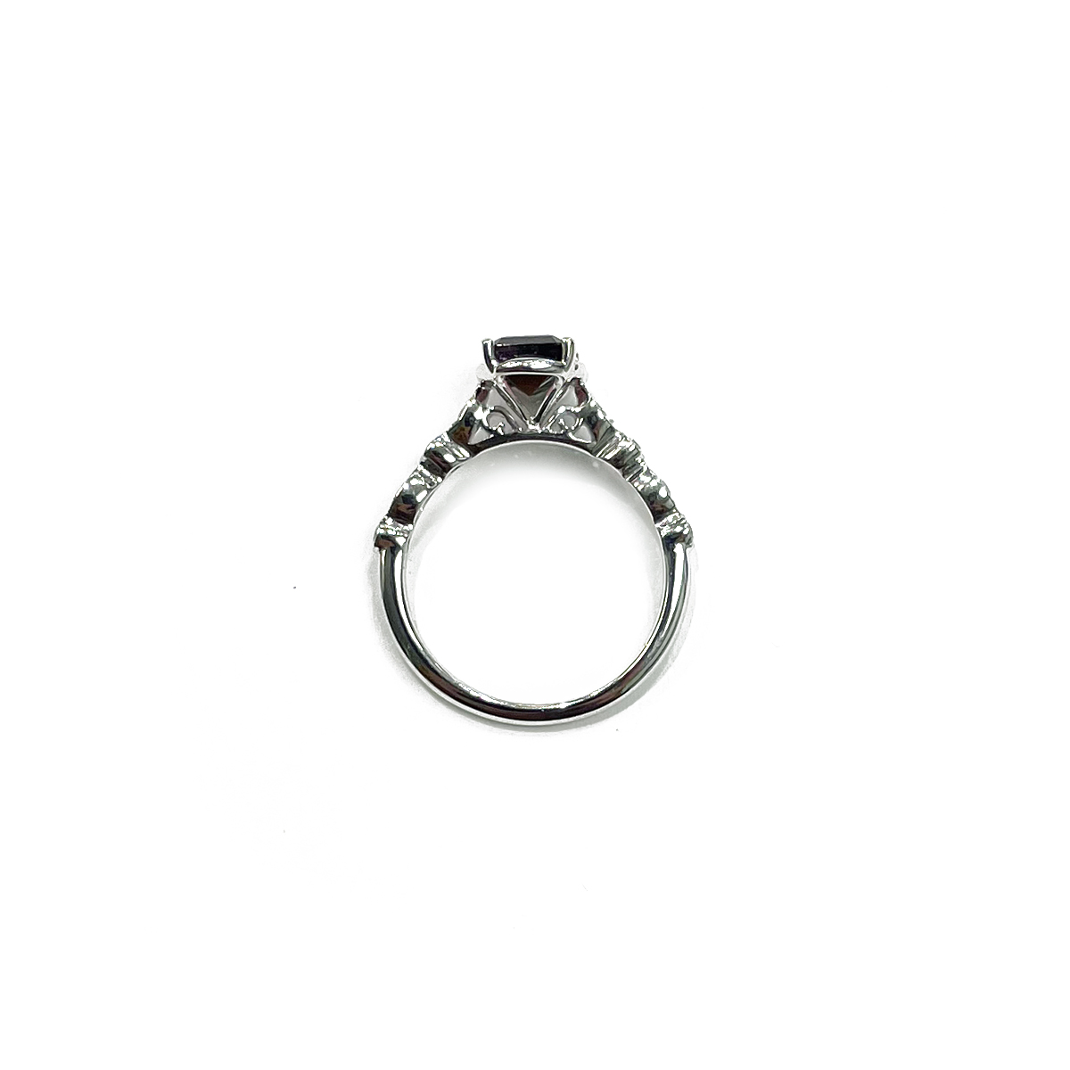 1.47ct Emerald Cut Watermelon Tourmaline with 0.15cttw Diamond Accents Prong Set in 14K White Gold Ring.