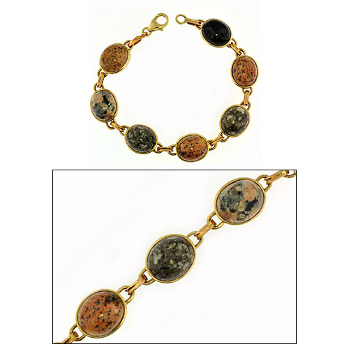 14K yellow gold “Beach Stone” bracelet bezel-set with medium sized beach stones collected from our local beaches, then cut and polished to bring out their natural luster and beauty. Truly a piece of Maine.