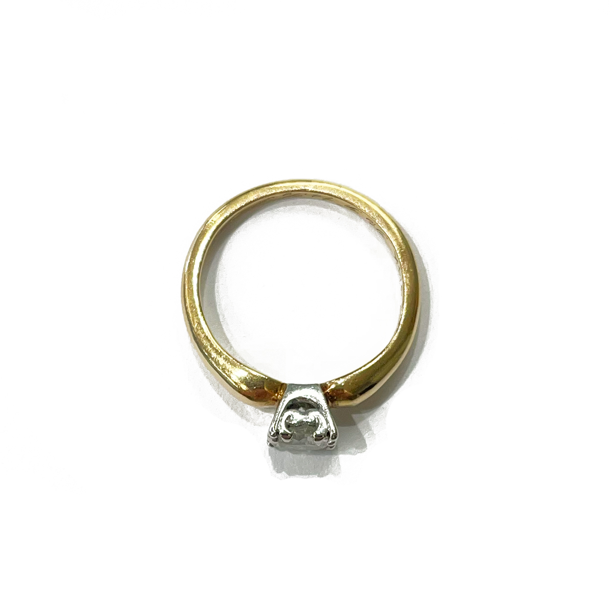 Elegant diamond solitaire estate ring featuring an approximately 0.45ct round cut diamond prong set in 14K Yellow and White Gold.
