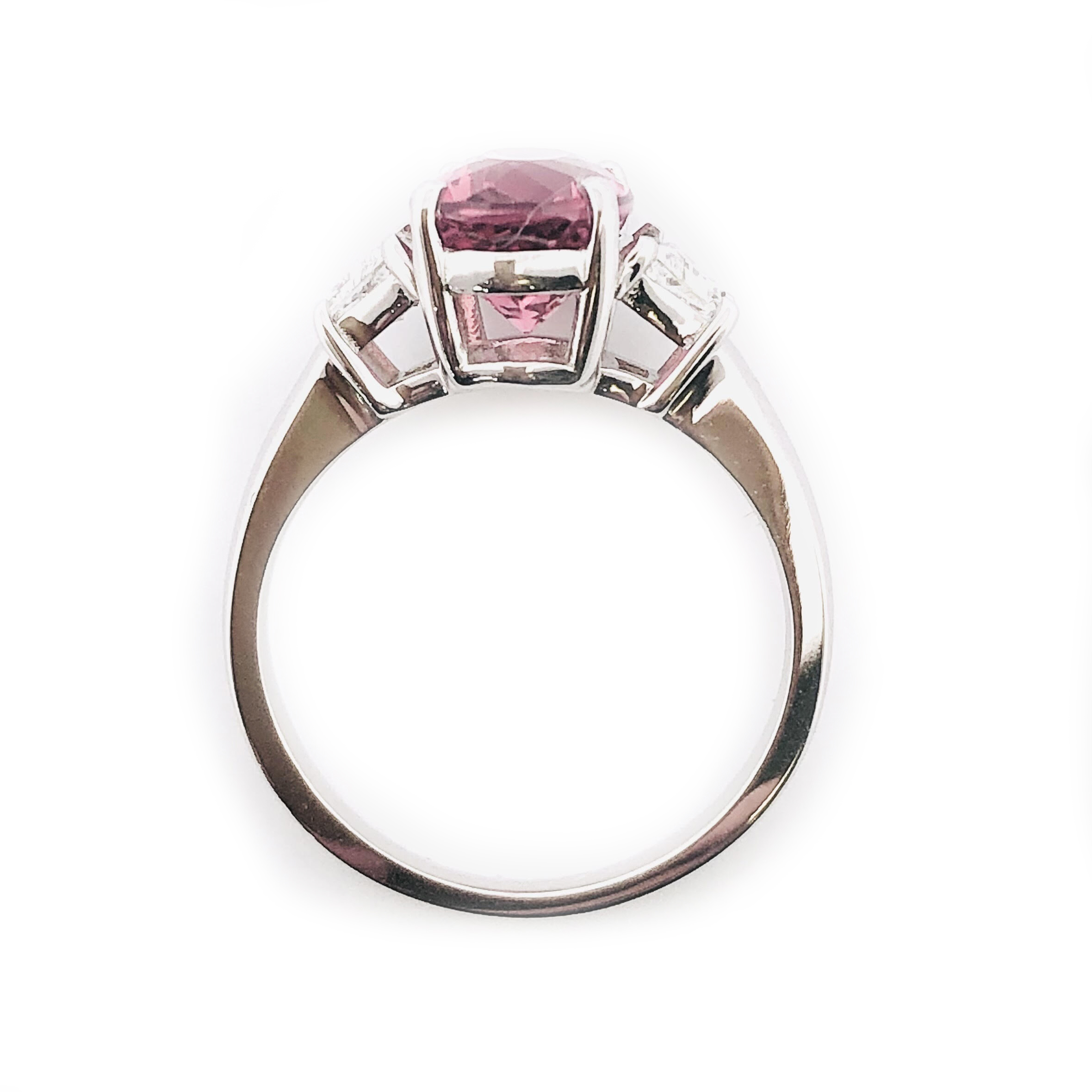 2.77ct oval pink tourmaline set with .60cttw of trapezoid cut diamonds in 14k white gold ring