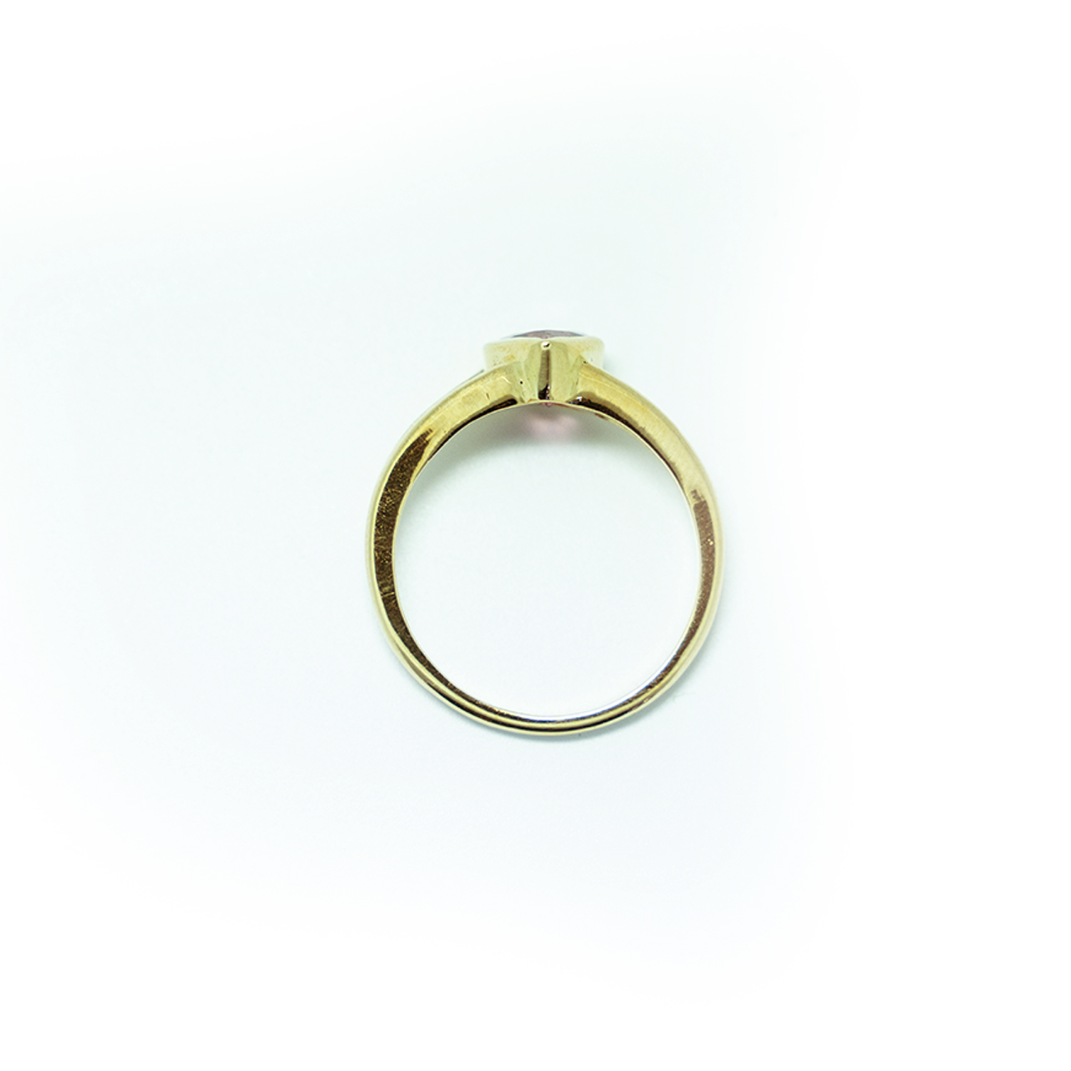 1.05ct Pear Shape Maine Pink Tourmaline Ring Bezel Set in 14K Yellow Gold Split-Shank Band