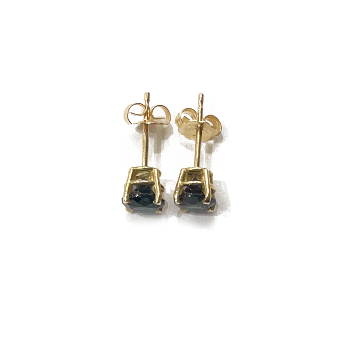 Gorgeous 1.14cttw Round Cut Deeply Hued Maine Indicolite Tourmaline Stud Earrings Prong Set in 14K Yellow Gold.
