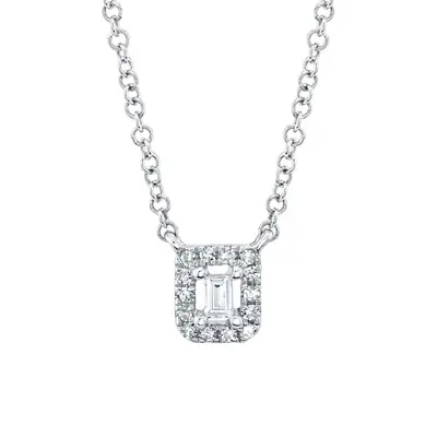 Shy Creation 0.05cttw Baguette and Round Diamond Pendant in 14K White Gold on an Adjustable Chain