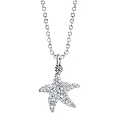 Shy Creation 0.15cttw Pave Diamond Starfish Necklace in 14K White Gold, Adjustable Chain