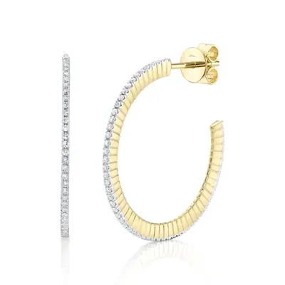Shy Creation 0.36cttw Diamond Ribbed Hoop Earrings