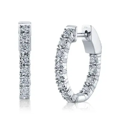 Shy Creation 0.47cttw Diamond Inside Out Oval Hoop Earring in 14K White Gold