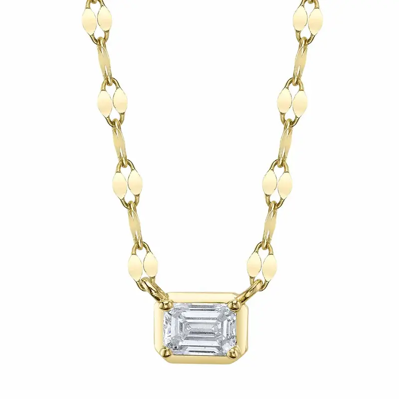 Shy Creations 0.20ct Emerald Cut Diamond Pendant Prong Set in 14K Yellow Gold on an 18" Sparkle Chain