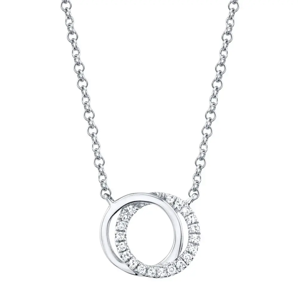Shy Creations double circle pendant set with .07cttw of diamonds in 14k white gold