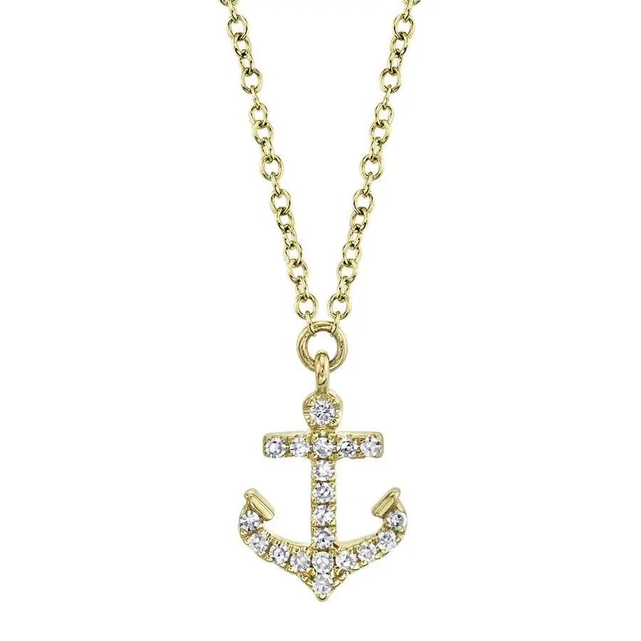 .07cttw diamond anchor necklace 14k yellow gold